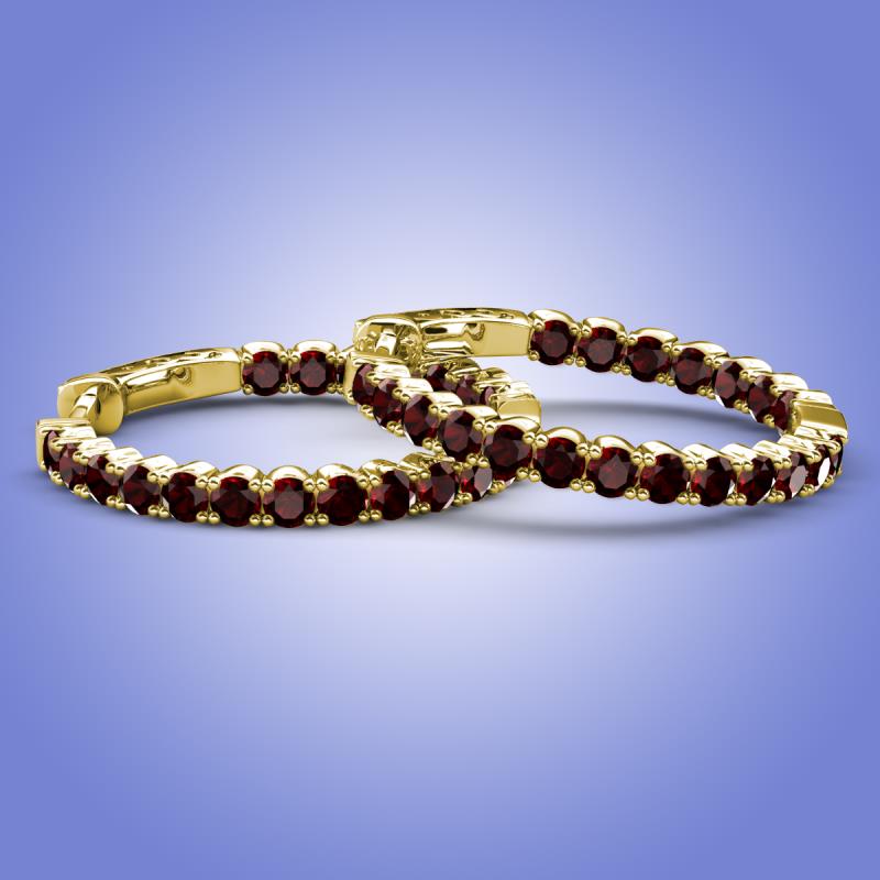 Round Red Garnet 2.10 ctw Four Prong Inside Outside Women Eternity Hoop Earrings 14K Yellow Gold More Details ...
