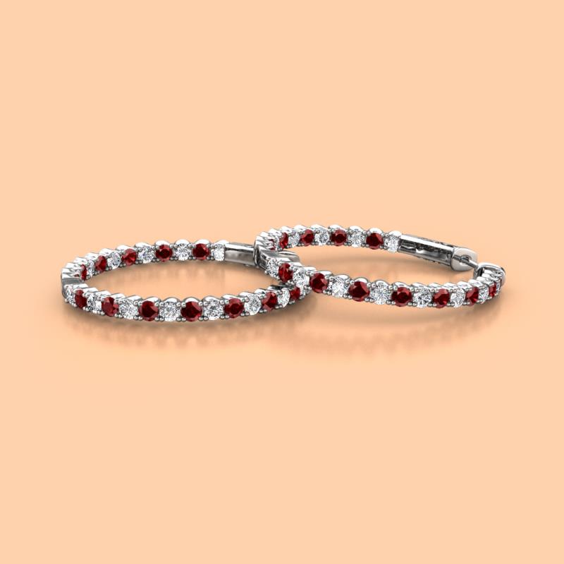 Round Red Garnet and Natural Diamond 1.47 ctw Inside Outside Women Eternity Hoop Earrings 14K White Gold More Details ...