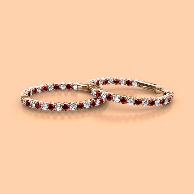 Round Red Garnet and Natural Diamond 1.47 ctw Inside Outside Women Eternity Hoop Earrings 14K Rose Gold More Details ...