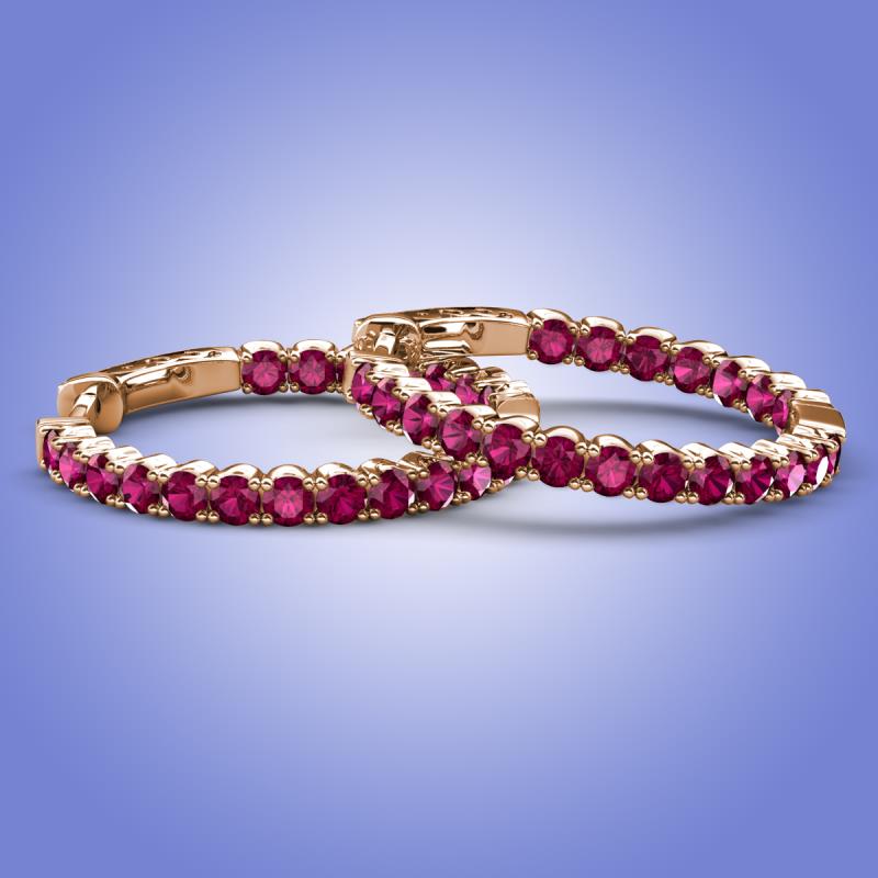 Round Rhodolite Garnet 2.10 ctw Four Prong Inside Outside Women Eternity Hoop Earrings 14K Rose Gold More Details ...