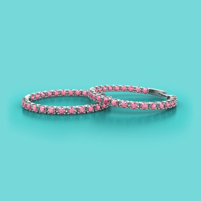 These are Beautiful Set of Eternity Hoop Earrings of 1.05 ctw with Four Prong Round Rhodolite Garnet set Inside and Outside giving it more Classy and Stylish Look.