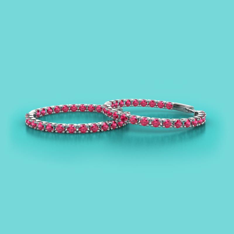 Round Ruby 1.05 ctw Four Prong Inside Outside Women Eternity Hoop Earrings 14K White Gold More Details ...