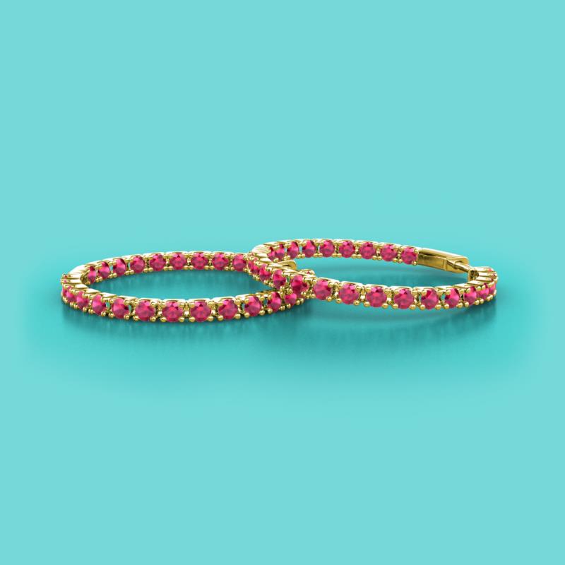 Round Ruby 1.05 ctw Four Prong Inside Outside Women Eternity Hoop Earrings 14K Yellow Gold More Details ...
