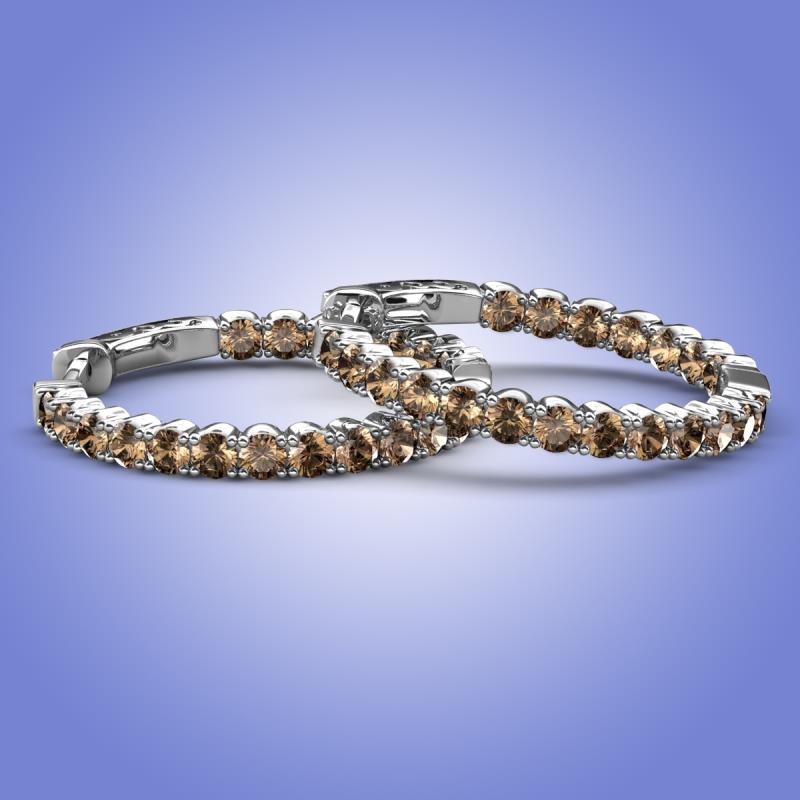 These are Beautiful Set of Eternity Hoop Earrings of 1.80 ctw with Four Prong Round Smoky Quartz set Inside and Outside giving it more Classy and Stylish Look.