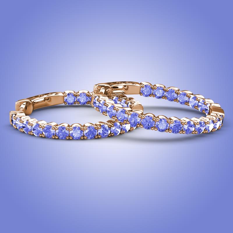 Round Tanzanite 1.80 ctw Four Prong Inside Outside Women Eternity Hoop Earrings 14K Rose Gold More Details ...