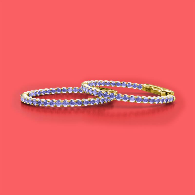 These are Beautiful Set of Hoop Earrings with Four Prong Round Tanzanite set Inside and Outside giving it more Classy and Stylish Look.