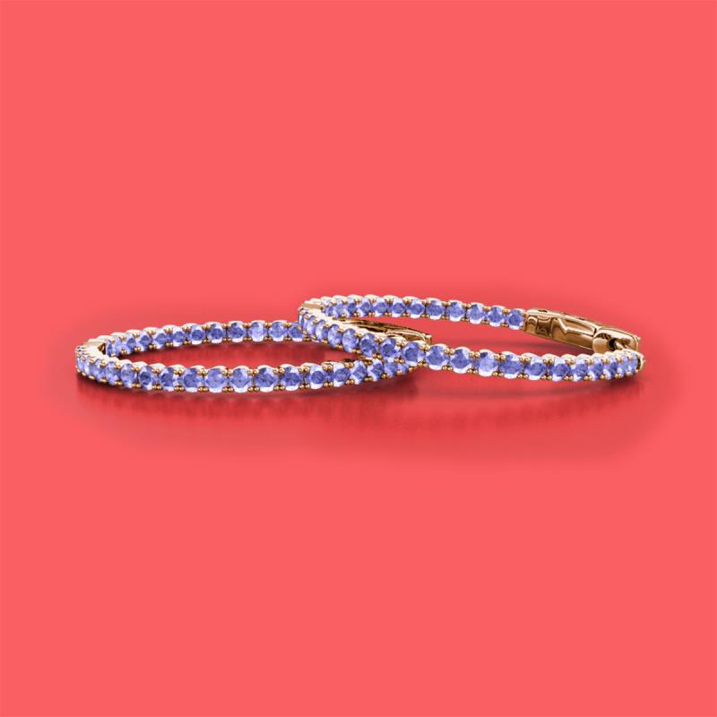 These are Beautiful Set of Hoop Earrings with Four Prong Round Tanzanite set Inside and Outside giving it more Classy and Stylish Look.