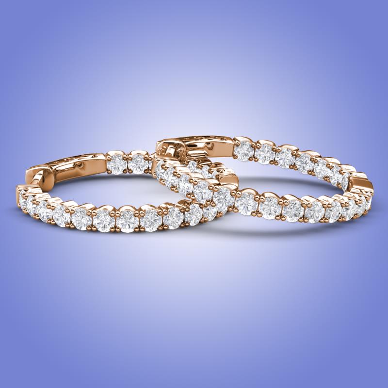 Round White Sapphire 1.89 ctw Four Prong Inside Outside Women Eternity Hoop Earrings 14K Rose Gold More Details ...