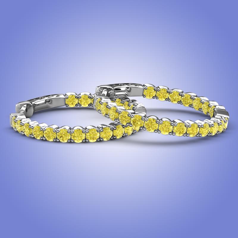 These are Beautiful Set of Eternity Hoop Earrings of 2.00 ctw with Four Prong Round Yellow Diamond set Inside and Outside giving it more Classy and Stylish Look.