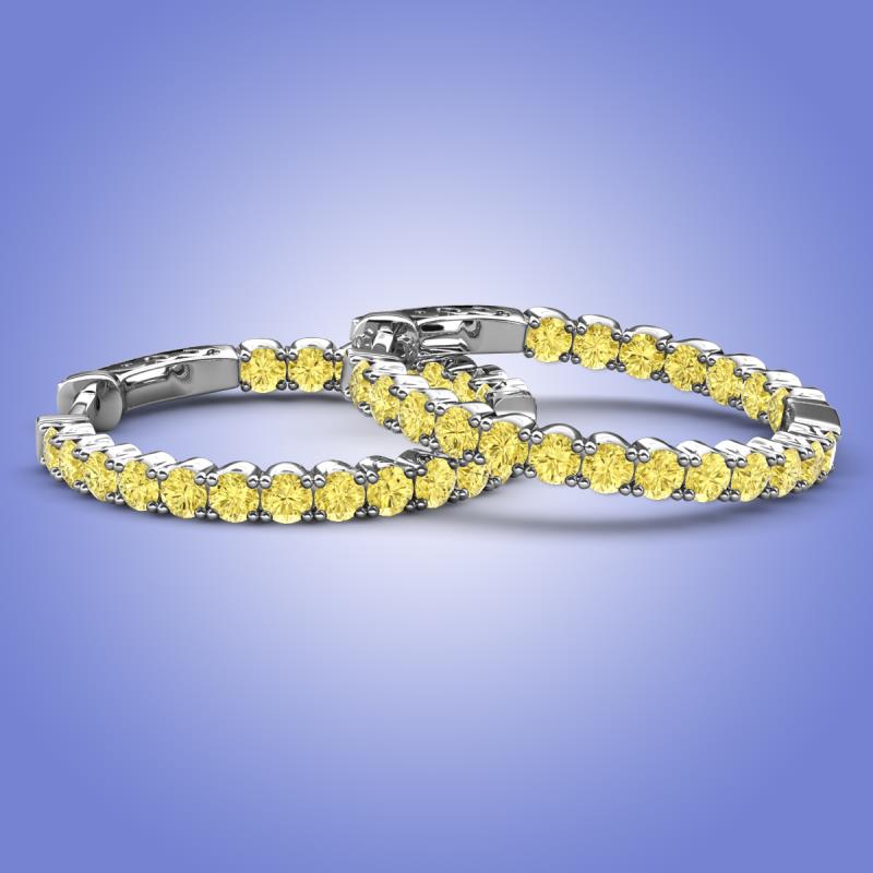 Round Yellow Sapphire 2.00 ctw Four Prong Inside Outside Women Eternity Hoop Earrings 14K White Gold More Details ...