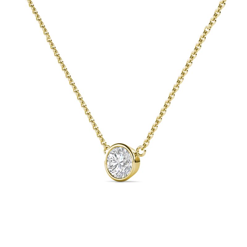 Round White Sapphire Bezel Set Womens Solitaire Pendant Necklace 0.53 ct 18K Yellow Gold.Included 16 Inches 18K Yellow Gold Chain. More Details ...