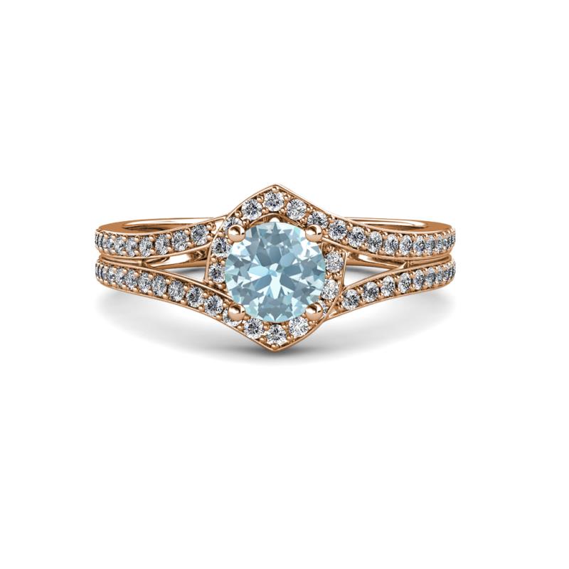 1 ctw Round Aquamarine and Diamond Split Shank Womens Engagement Ring 14K Rose Gold More Details ...