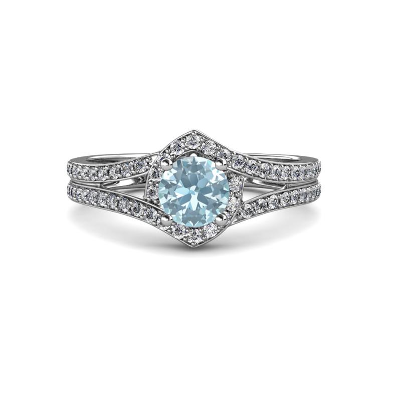 1 ctw Round Aquamarine and Diamond Split Shank Womens Engagement Ring Platinum More Details ...