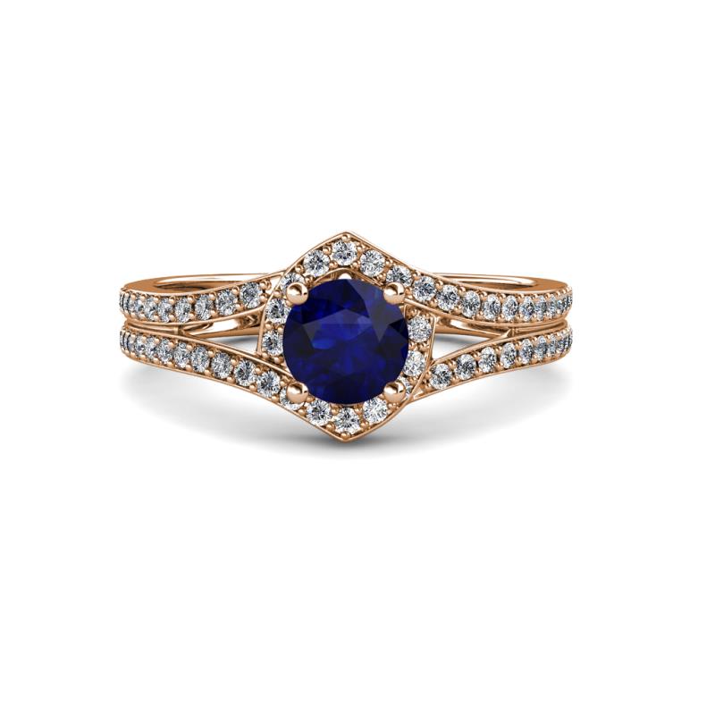 1 1/3 ctw Round Blue Sapphire and Diamond Split Shank Womens Engagement Ring 14K Rose Gold More Details ...