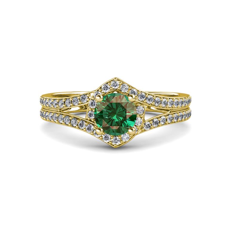 1 1/6 ctw Round Diamond and Lab Created Alexandrite Split Shank Womens Engagement Ring 14K Yellow Gold More Details ...