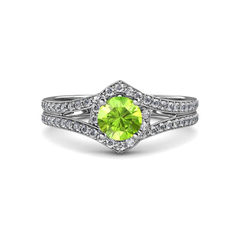 1 1/8 ctw Round Peridot and Diamond Split Shank Womens Engagement Ring 14K White Gold More Details ...