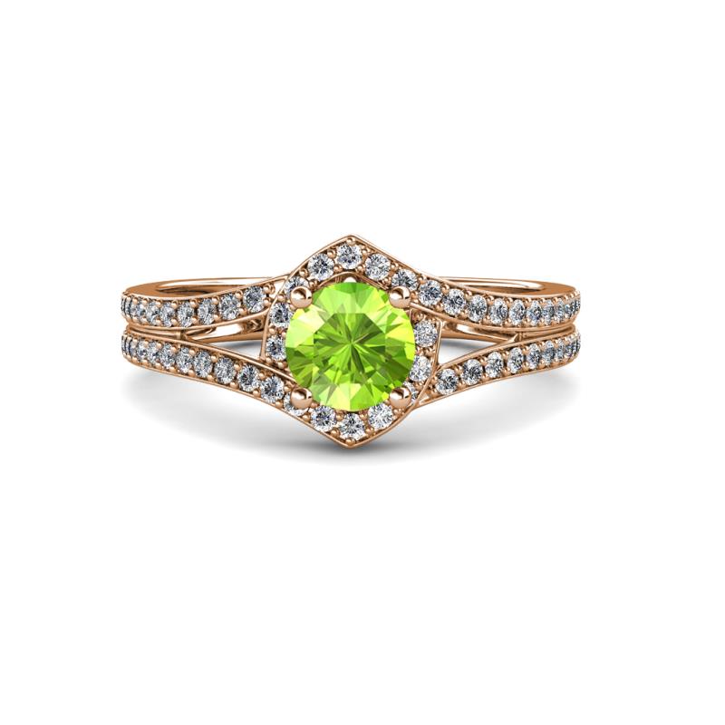 1 1/8 ctw Round Peridot and Diamond Split Shank Womens Engagement Ring 14K Rose Gold More Details ...