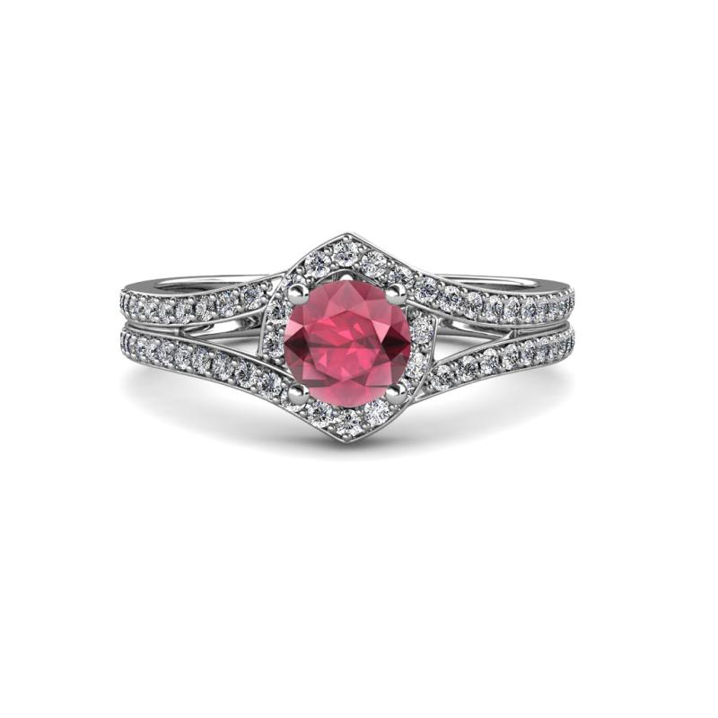 1 1/6 ctw Round Rhodolite Garnet and Diamond Split Shank Womens Engagement Ring 14K White Gold More Details ...