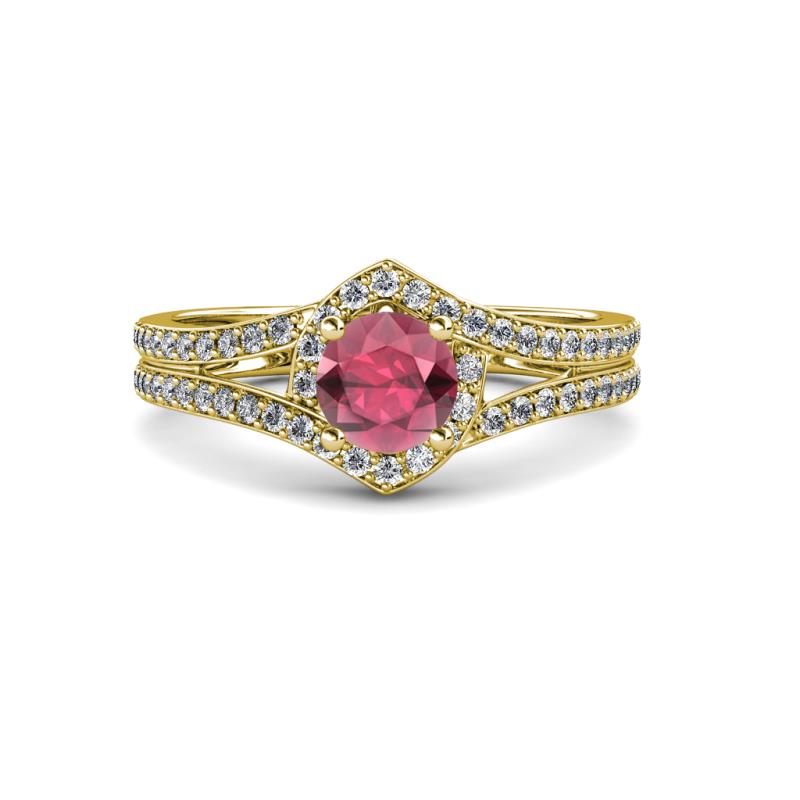1 1/6 ctw Round Rhodolite Garnet and Diamond Split Shank Womens Engagement Ring 18K Yellow Gold More Details ...