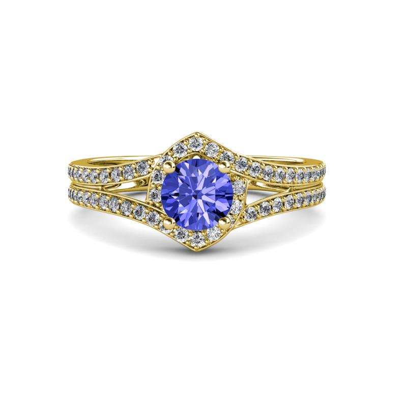 1 1/8 ctw Round Tanzanite and Diamond Split Shank Womens Engagement Ring 14K Yellow Gold More Details ...