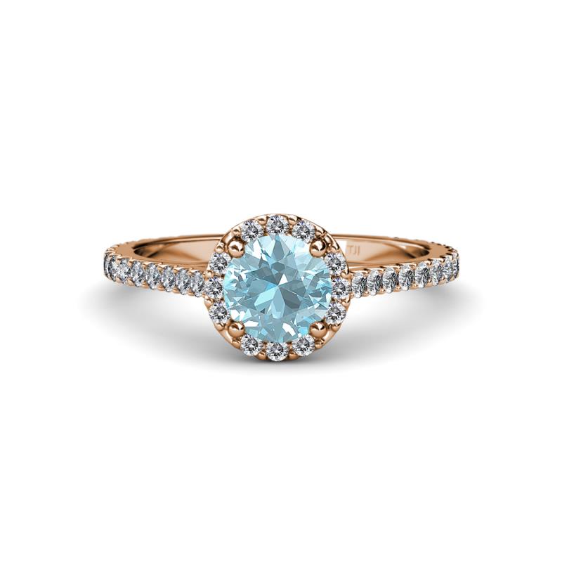 Aquamarine and Diamond Womens Halo Engagement Ring 1.62 ctw 14K Rose Gold More Details ...