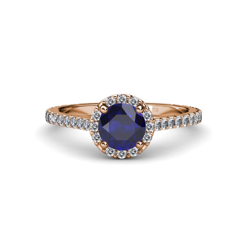 Blue Sapphire and Diamond Womens Halo Engagement Ring 1.57 ctw 14K Rose Gold More Details ...
