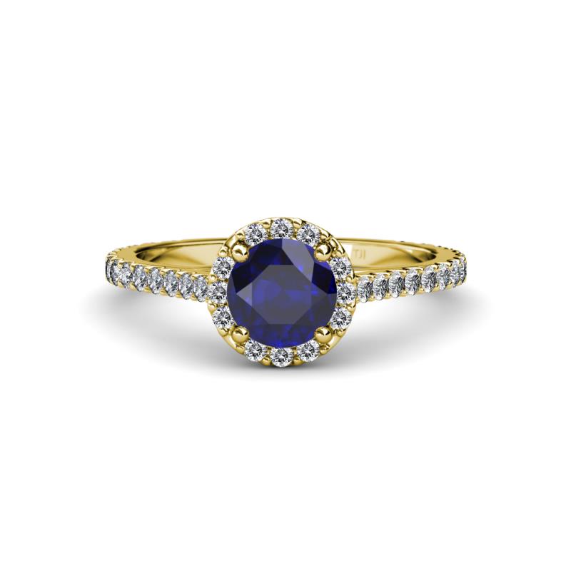 Blue Sapphire and Diamond Womens Halo Engagement Ring 1.57 ctw 18K Yellow Gold More Details ...