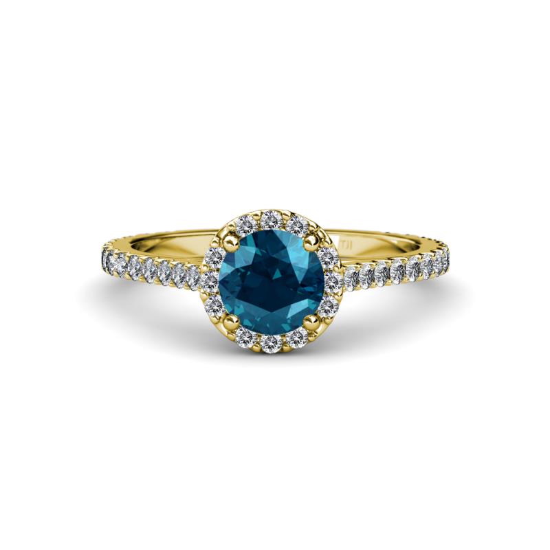 Blue and White Diamond Womens Halo Engagement Ring 1.62 ctw 18K Yellow Gold More Details ...