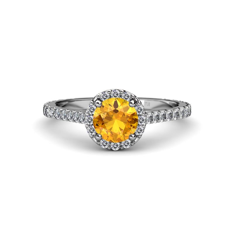 Citrine and Diamond Womens Halo Engagement Ring 1.62 ctw 18K White Gold More Details ...