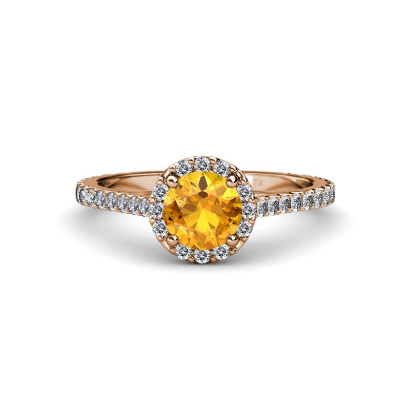 Citrine and Diamond Womens Halo Engagement Ring 1.62 ctw 18K Rose Gold More Details ...