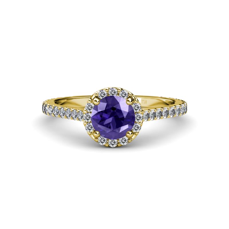 Iolite and Diamond Womens Halo Engagement Ring 1.62 ctw 18K Yellow Gold More Details ...
