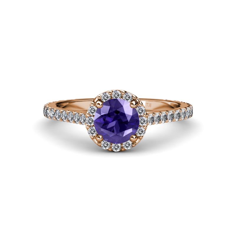 Iolite and Diamond Womens Halo Engagement Ring 1.62 ctw 18K Rose Gold More Details ...
