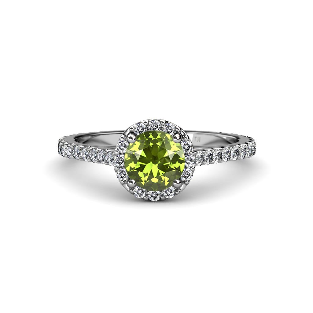Peridot and Diamond Womens Halo Engagement Ring 1.72 ctw 18K White Gold More Details ...
