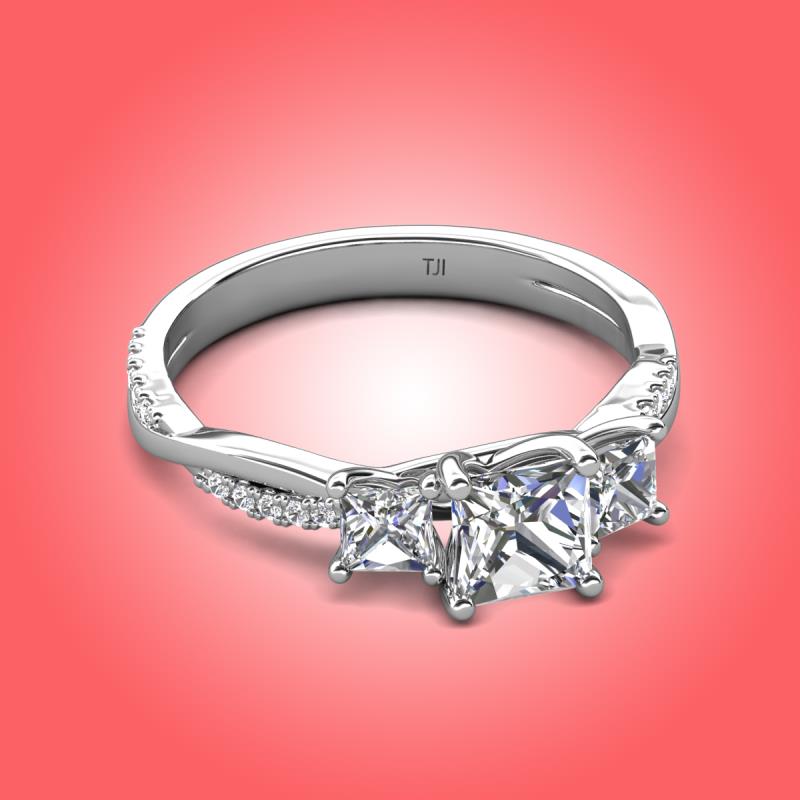 Gorgeous 3 Stone Princess Cut Natural Diamond and Lab Grown Diamond accented Diamond Twisted Vine Engagement Ring in Sterling Silver More Details ...
