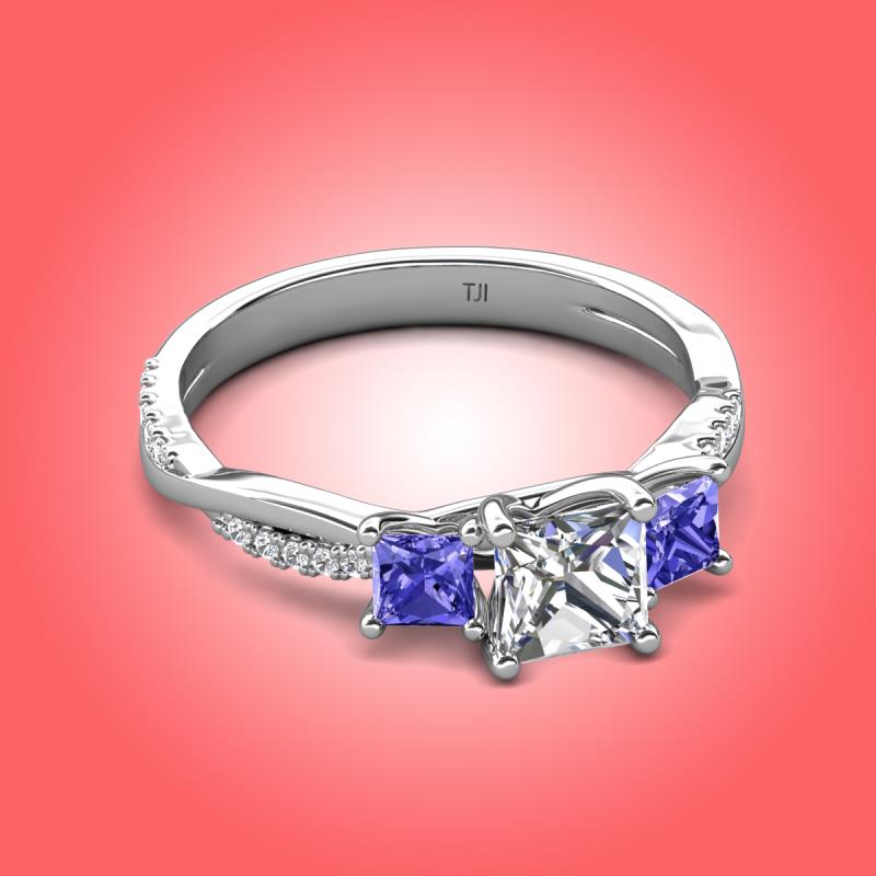 Every love story is beautiful, so make yours the most favourite one with this Engagement ring of 1.56 ctw Princess Cut Natural Diamond with Tanzanite Side Stone and Side Natural Diamond Twisted Vine Engagement Ring set in a Prong setting.