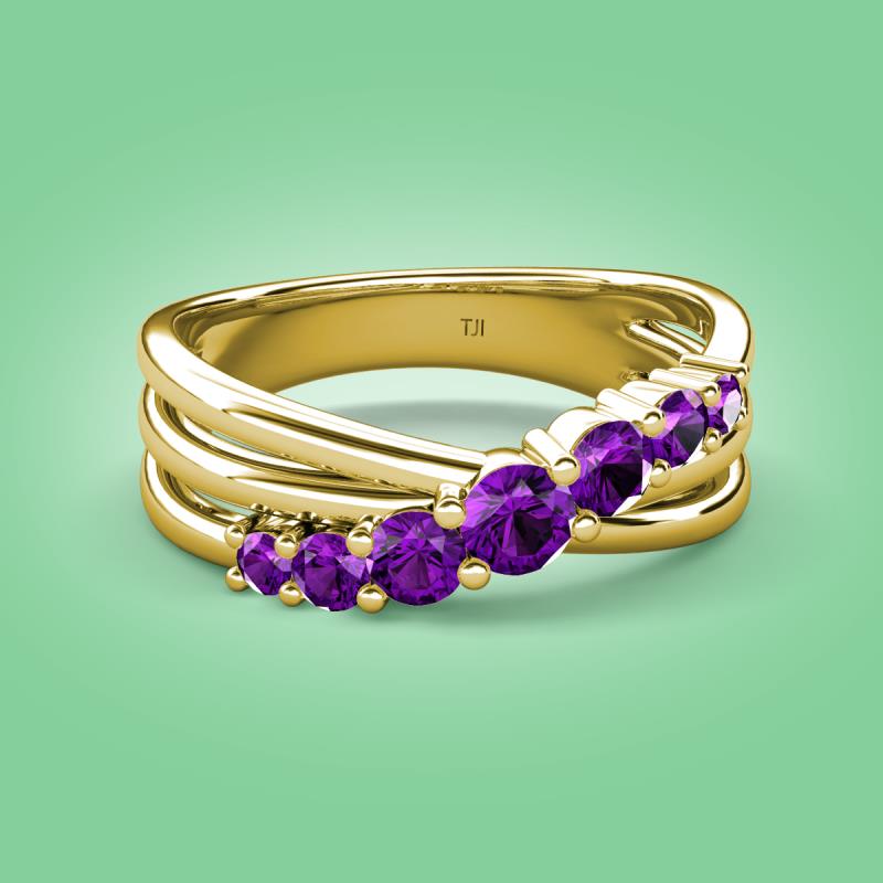 Make a statement with this stunning Wedding Band of 0.39 ctw featuring 7 sparkling Graduated Round Amethyst set in a Prong Set with a crossover design, adding a touch of elegance and sophistication to any outfit.
