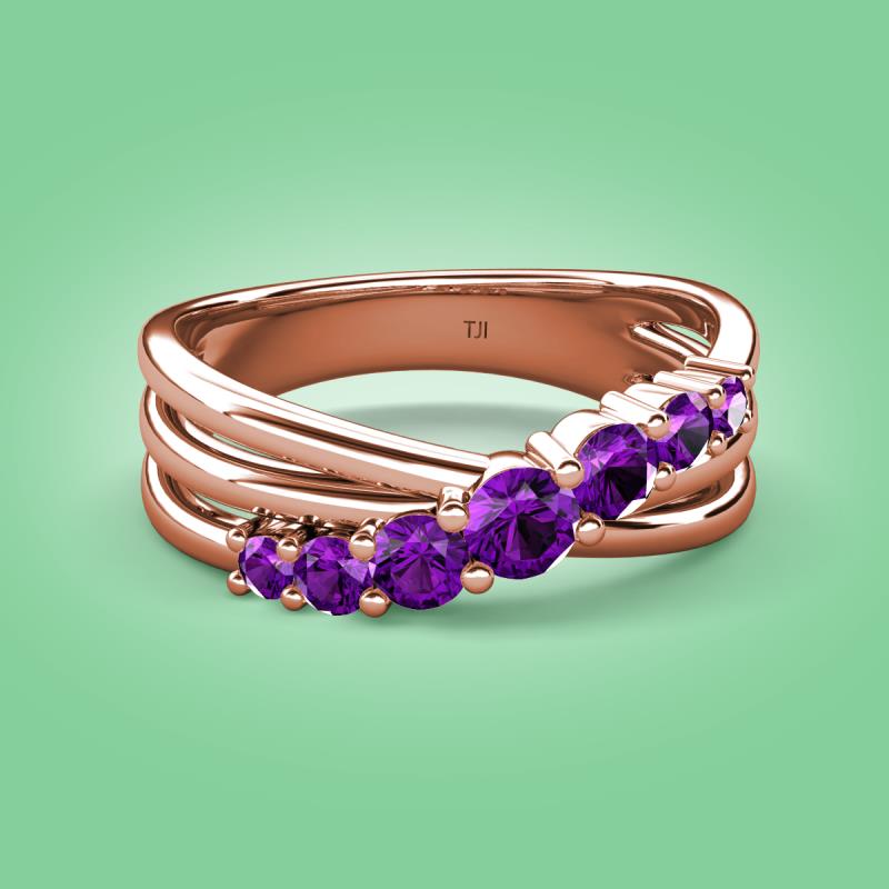 0.39 ctw Amethyst Crossover 7 Stone Prong Set Women Stackable Wedding Band 18K Rose Gold More Details ...