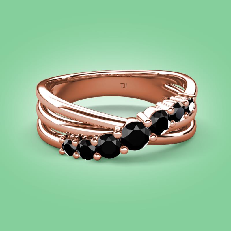 0.53 ctw Black Diamond Crossover 7 Stone Prong Set Women Stackable Wedding Band 10K Rose Gold More Details ...