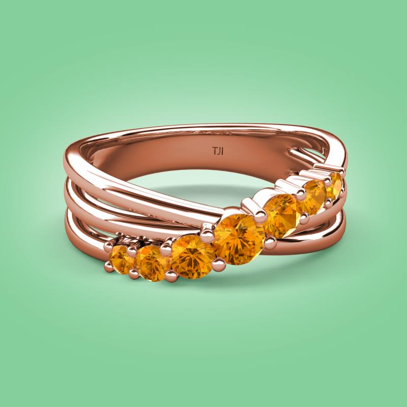 Make a statement with this stunning Wedding Band of 0.39 ctw featuring 7 sparkling Graduated Round Citrine set in a Prong Set with a crossover design, adding a touch of elegance and sophistication to any outfit.