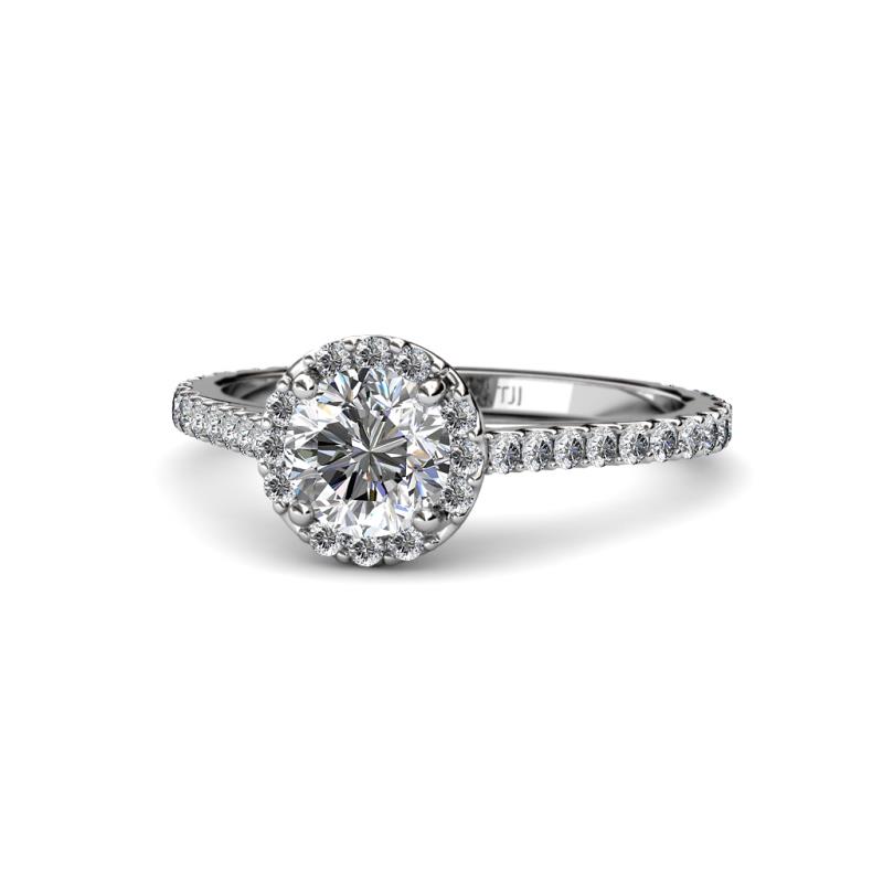 Diamond Four Prong Semi Mount Womens Halo Engagement Ring Setting 0.62 ctw 14K White Gold More Details ...