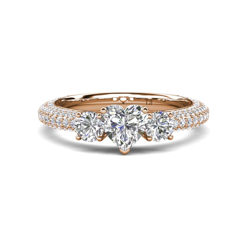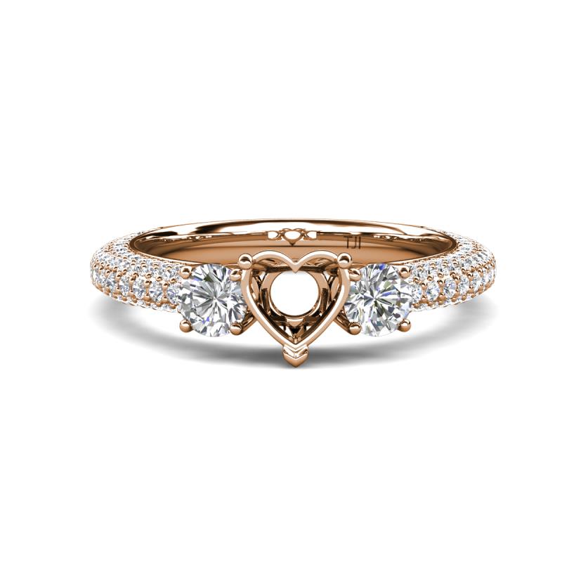 3 Stone Pave Natural Diamond 2.40 ctw Heart Semi Mount Engagement Ring 18K Rose Gold More Details ...