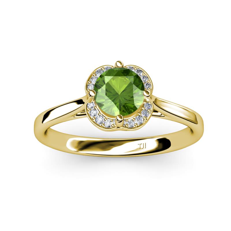 Green Garnet Diamond (VS2-SI1, F-G) Halo Engagement Ring 1.10 ct tw in 18K Yellow Gold. More Details ...
