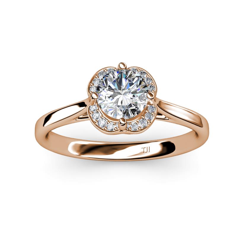 This is a Gorgeous 1.06 ctw Floral Design Halo Engagement Ring with beautifully fitted Center IGI Certified Lab Grown Diamond with Side Round Natural Diamond.