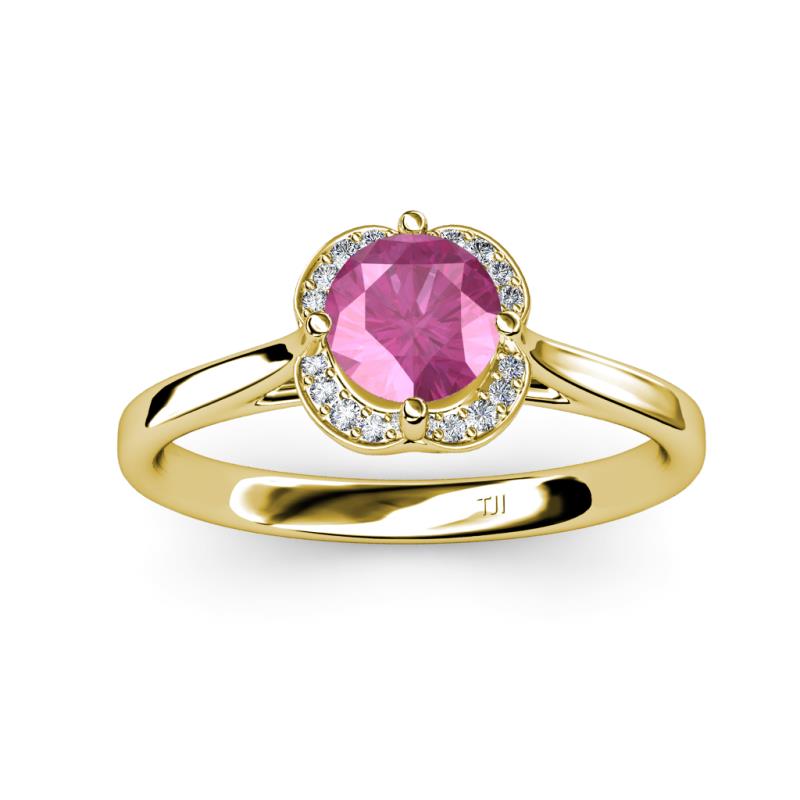 Pink Sapphire and Diamond Womens Halo Engagement Ring 1.01 ctw 18K Yellow Gold More Details ...