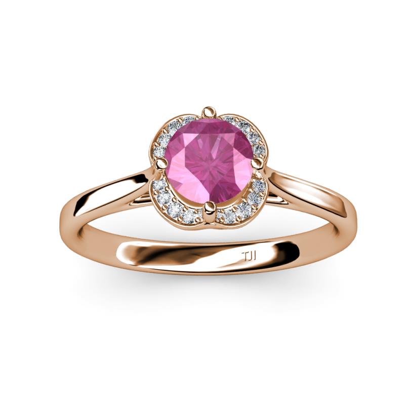 Pink Sapphire and Diamond Womens Halo Engagement Ring 1.01 ctw 18K Rose Gold More Details ...
