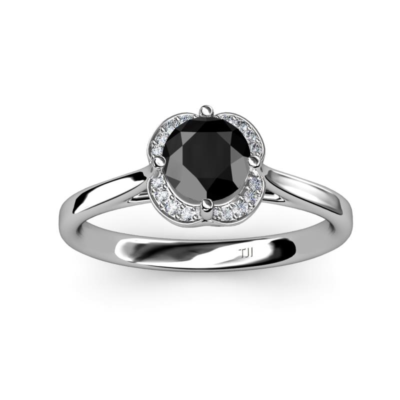 This is a Gorgeous 1.06 ct tw Floral Design Halo Engagement Ring with beautifully fitted Center Black Diamond with Side Round White Diamond.