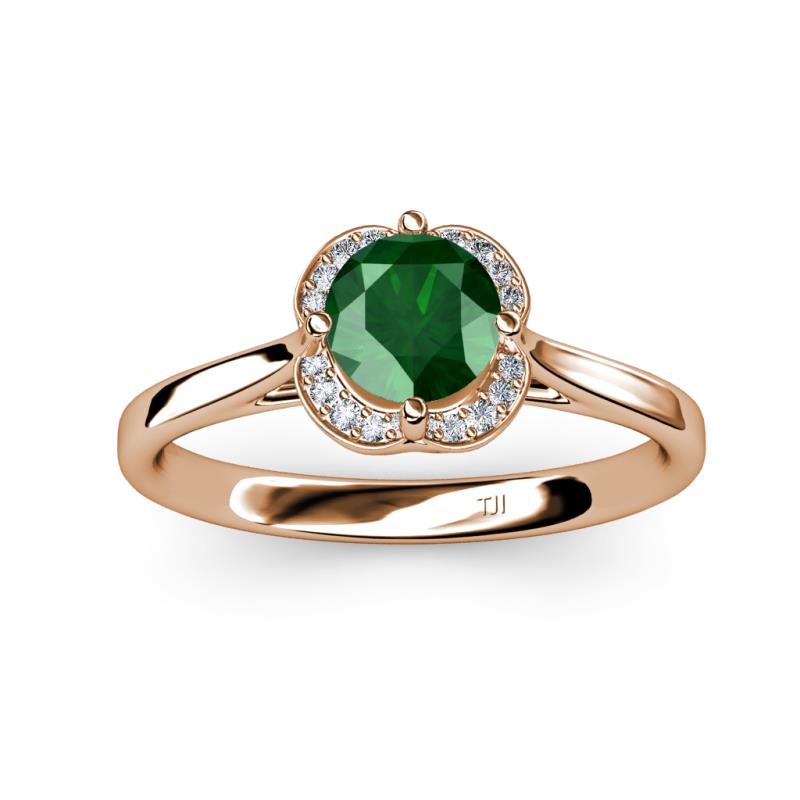 Round Emerald and Diamond 0.78 ctw Womens Halo Engagement Ring 14K Rose Gold More Details ...