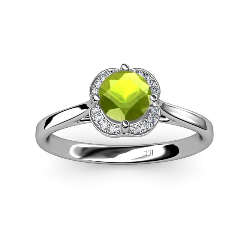 Round Peridot and Diamond 1.16 ctw Womens Halo Engagement Ring 14K White Gold More Details ...
