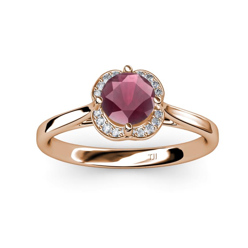 Round Rhodolite Garnet and Diamond 1.06 ctw Womens Halo Engagement Ring 14K Rose Gold More Details ...