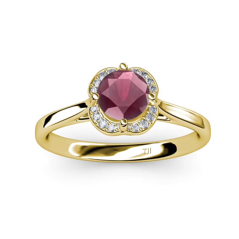 Round Rhodolite Garnet and Diamond 1.06 ctw Womens Halo Engagement Ring 18K Yellow Gold More Details ...